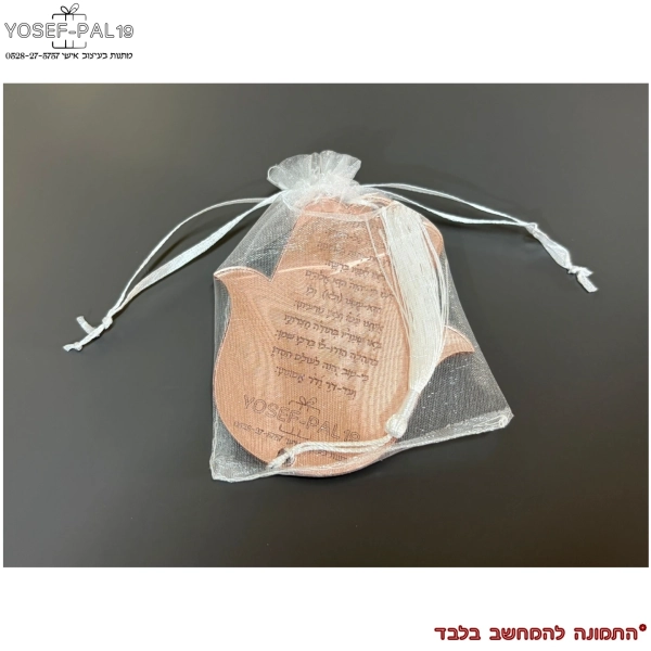 חמסה מעוצבת עם מזמור לתודה היא מתנה מרגשת ומלאת משמעות, המשלבת עיצוב יוקרתי עם מסר של תודה, שמירה וברכה. החמסה מגיעה בעבודת חריטה איכותית על גבי אקריל, בעיצוב מוקפד שמתאים לכל בית, משרד או חלל עסקי.