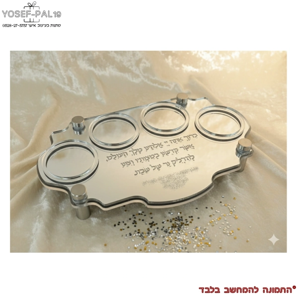 מעמד ייחודי ומעוצב להדלקת 4 נרות שבת, בהתאמה אישית מלאה – שמות, הקדשה, תאריך או ברכה מיוחדת.