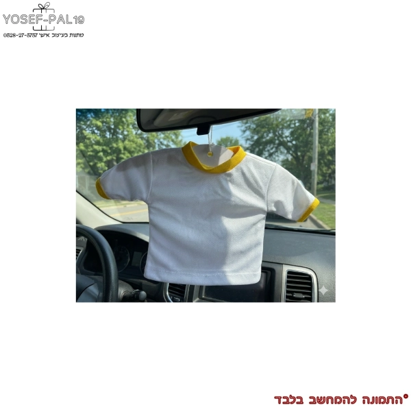 חולצה קטנה לתלייה על המראה הקדמית בעיצוב אישי לפי בחירה: תמונה, שם, משפט השראה או לוגו ייחודי.